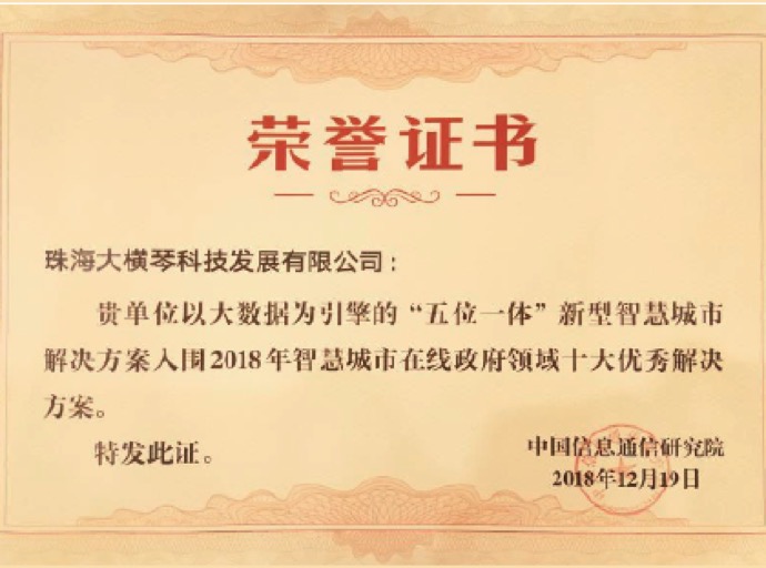 基于跨域多维云平台开发的“琴澳通APP”荣获2019广东省“互联网+政务服务”创新案例。
