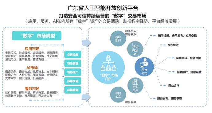 数字市场提供应用商店,支持应用解决方案生态合作伙伴在平台上进行应用发布,同一用户支持多应用发布,统一应用支持多版本发布;支持为生态合作伙伴提供应用用户管理、运营数据分析、账户管理等后台运营管理功能;支持生态合作伙伴在平台上向使用其业务系统的用户进行收费。