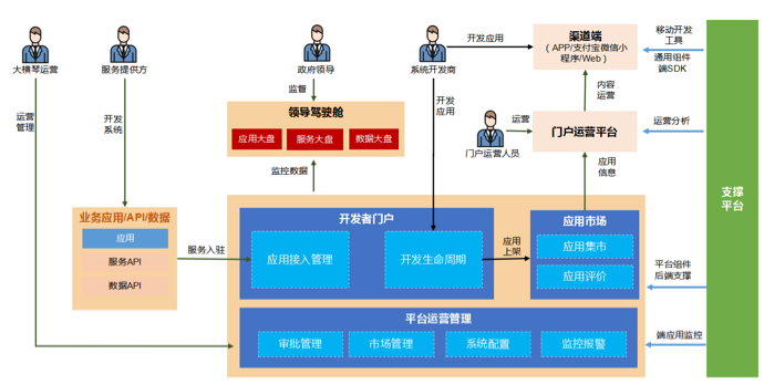 统一运营中心对平台、业务、客户、应用进行统一的管理,为接入统一门户的所有资源进行交易化管理,提供运营服务。